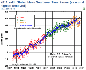 Desde que se comenzaron a utilizar instrumentos para medir los cambios del nivel del mar en la década de 1870, este ha aumentado a una razón de 0.14 centímetros por año, lo que totaliza un aumento de 20 centímetros hasta el presente. Sin embargo, el aumento del nivel del mar ha acelerado en las últimas décadas. El Intergovernmental Panel on Climate Change (IPCC) estima que entre 1961 y 2003 el nivel del mar aumentó a una razón de 0.18 centímetros por año. Mediciones satelitales más recientes indican que el nivel del mar ha aumentado alrededor de 2.7 centímetros desde el 2003 hasta el presente. Esto significa que la tasa de cambio en los últimos 8 años es de aproximadamente 0.34 centímetros por año. En otras palabras, casi el doble de la tasa de cambio entre 1993 y 2003.