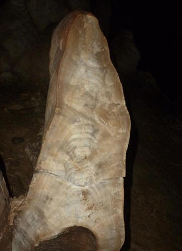 Capas de espeleotemas en estalagmita, Onyx Cave, Kentucky, EE.UU. Foto tomada por P. A. Llerandi-Román, marzo 2012.