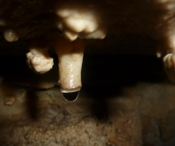 Estalactita en formación, Onyx Cave, Kentucky, EE.UU. Foto tomada por P. A. Llerandi-Román, marzo 2012.